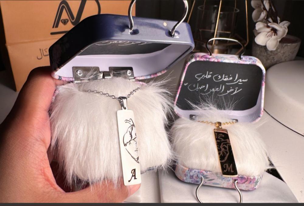 سلسالين منفصلين لك ولصديقتك ذهبي وفضيمنحوت عليه قلب نصه لك والنص الثاني لصديقتكومنحوت عليه حرفك وحرفها